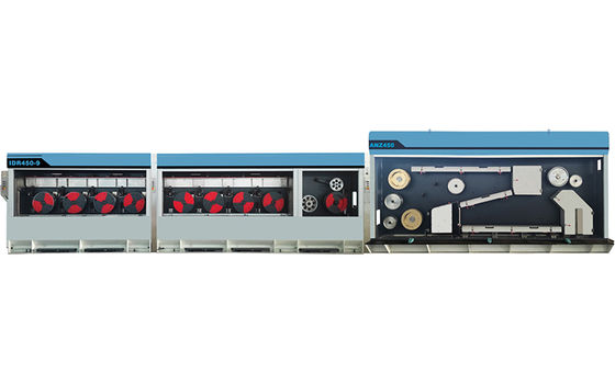 এই মেশিনটি Φ1.2-Φ3.5 মিমি তামার তার আঁকার জন্য ব্যবহৃত হয়। আঁকা ব্লকগুলি এক সারিতে মাউন্ট করা হয়। ধ্রুব গতির চাকা এবং অন্যান্য 12 আঁকা ব্লক যথাক্রমে দুটি মোটর দ্বারা চালিত হয়।এই ধরনের নকশা অপারেশন সহজ করে তোলে এবং পরিবর্তন দ্রুত মারা.